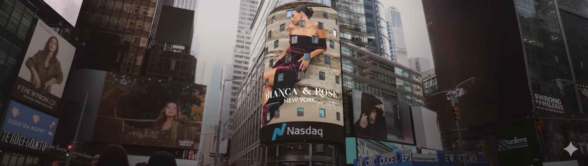 Bianca & Rose lights up Times Square NYC. A celebration of confidence, femininity and global appeal —adventure awaits dress the journey