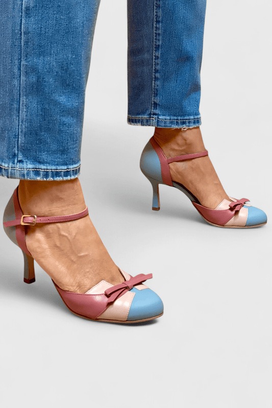 Violy | T-Strap Peep Toe Mid-Heel Sandals
