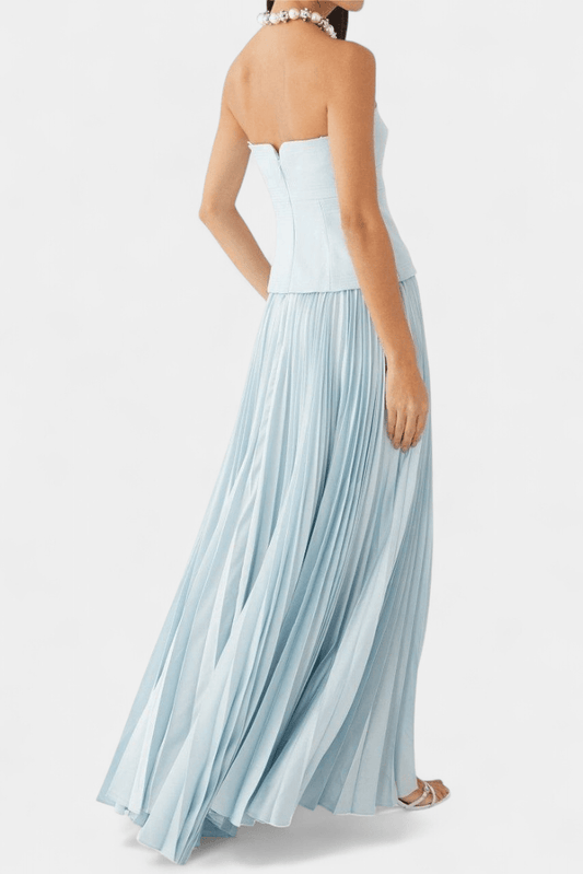 Belen | High-Neck Pleated Flutter-Sleeve Maxi Dress