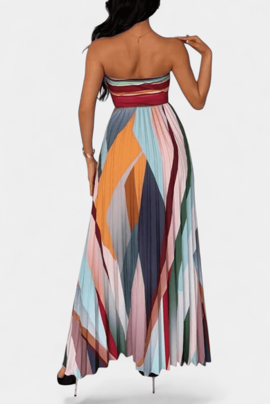 Leticia | Off-Shoulder Pleated Multicolour Maxi Dress