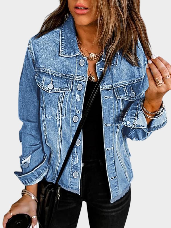 Get that perfect blend of rugged and chic with the Ava Classic Denim Jacket. Whether paired with a casual outfit or thrown over a dress, this jacket's versatile design and premium denim fabric will keep you looking sharp and feeling comfortable all day.