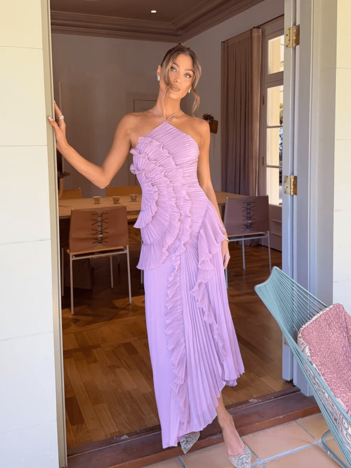 The Marina Dress is light, romantic, and ready for every special summer moment. With a waist-hugging fit, ruffle accents, and an adjustable bow-back neckline, it’s all about effortless beauty and feel-good elegance.